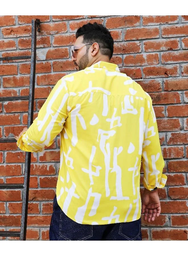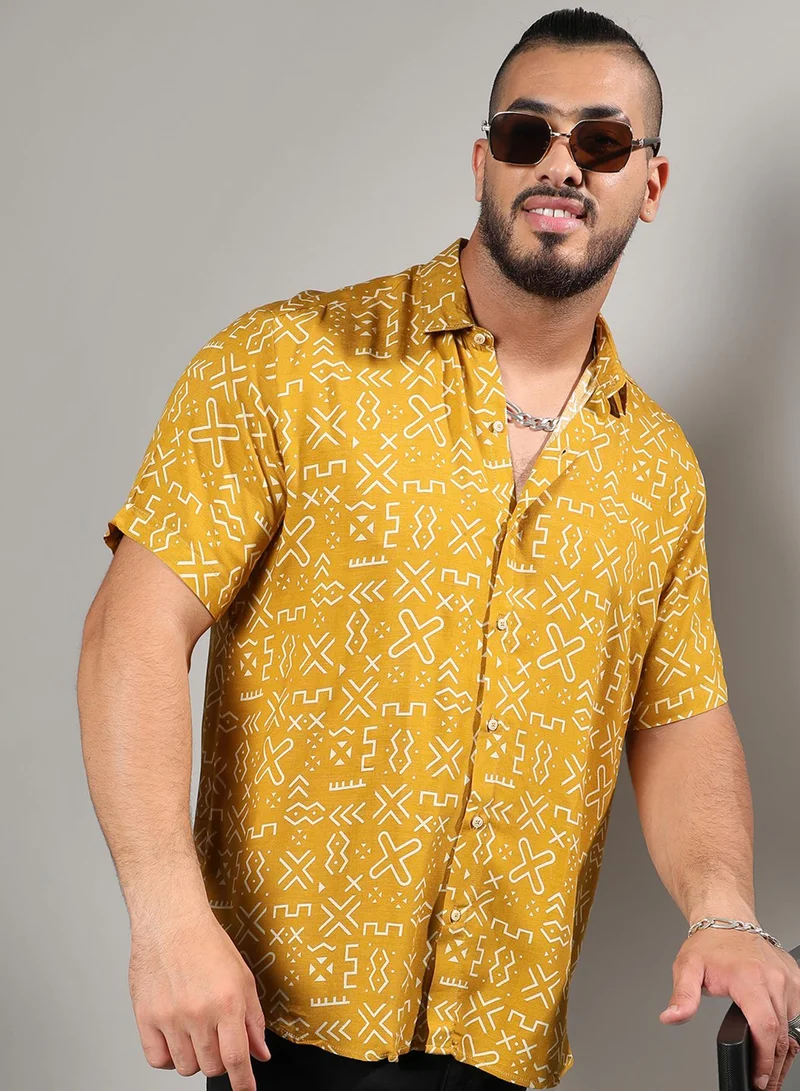 Instafab Plus Men's Mustard Yellow Minimal Aztec Shirt For Casual Wear | Spread Collar | Short Sleeve | Button Closure | Heavy Rayon Shirt Crafted With Comfort Fit For Everyday Wear