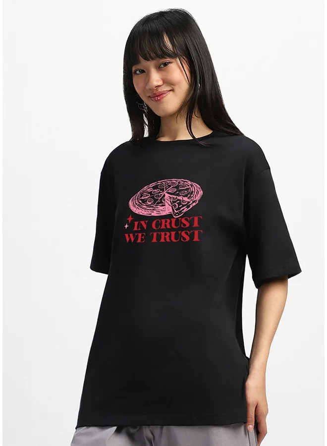 Juneberry Pure Cotton Over-size BLACK T-Shirt For Women