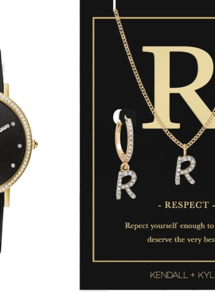 Kendall + Kylie Women's Black Analog Watch with Necklace and Earrings Set, A0951G-42-G02