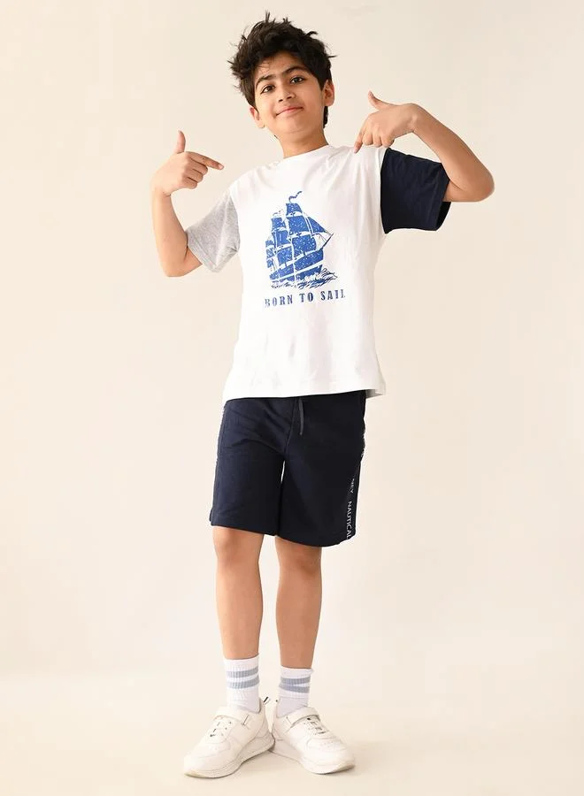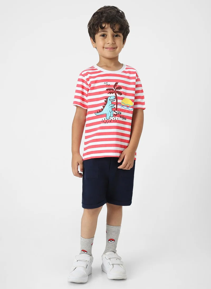 Nautinati Boys' Cotton Dino Printed T-shirt and Denim Shorts