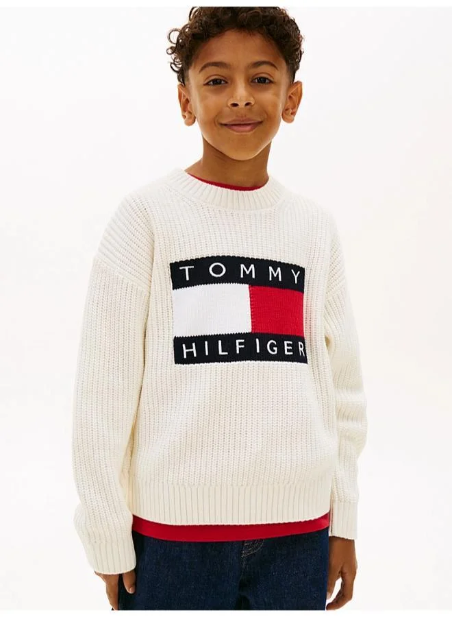 Kids White Fair Isle Christmas Sweater with Trees