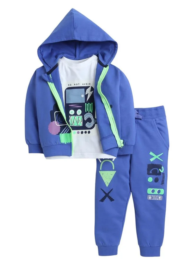 Boys Zip-Neck Colour-block Fleece Tracksuit - Navy & White