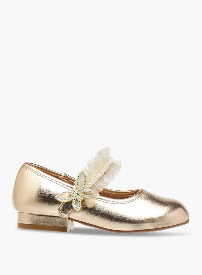 Girls Embellished Ballerina Shoes with Hook and Loop Closure