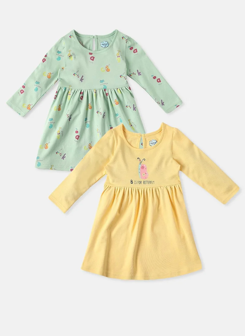 Girl's Multicolour 100% Cotton Printed Regular Fit Dress