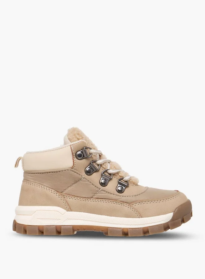 Boys Panelled High Cut Boots with Lace Detail and Zip Closure