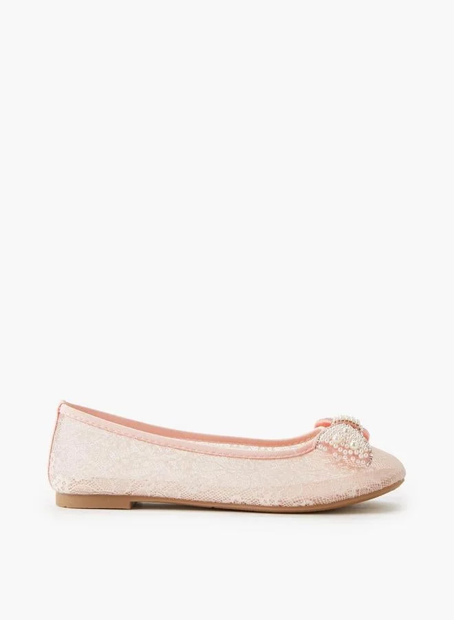 Girls Bow Embellished Ballerina Shoes with Hook and Loop Closure Ramadan Collection