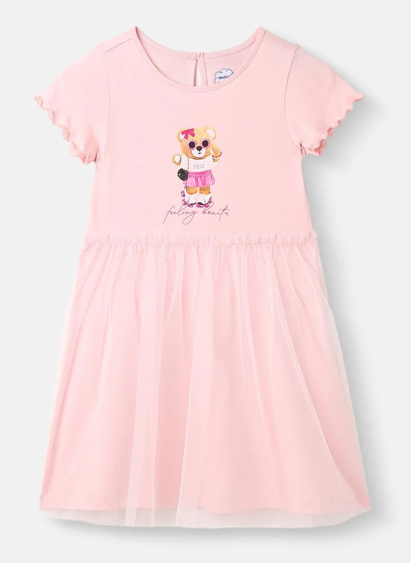 Girls’ Knit and Woven Frock |Graphic Printed Tulle Dress| 2-10 Years