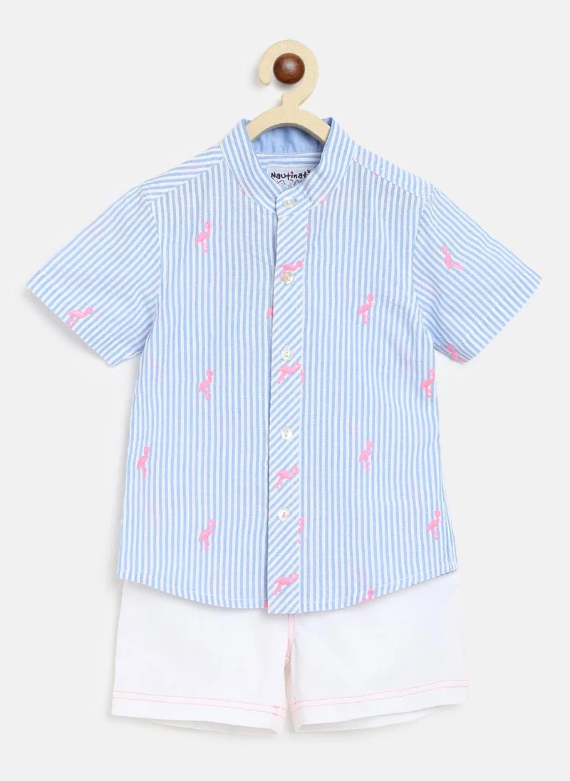 Nautinati Blue Graphic Print T-shirt and Pants Set for Infant Boys