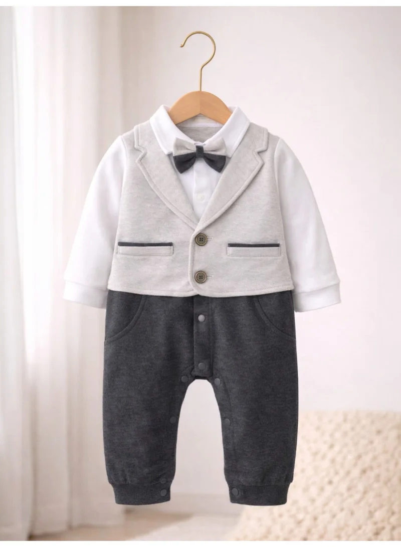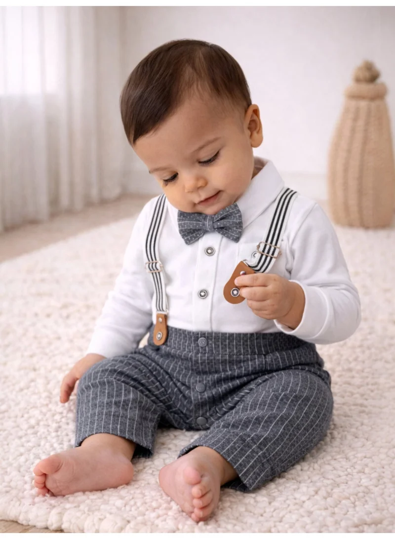 Infant Boys’ Shirt, Bow Tie & Suspenders Mock Romper 3 Pc Set