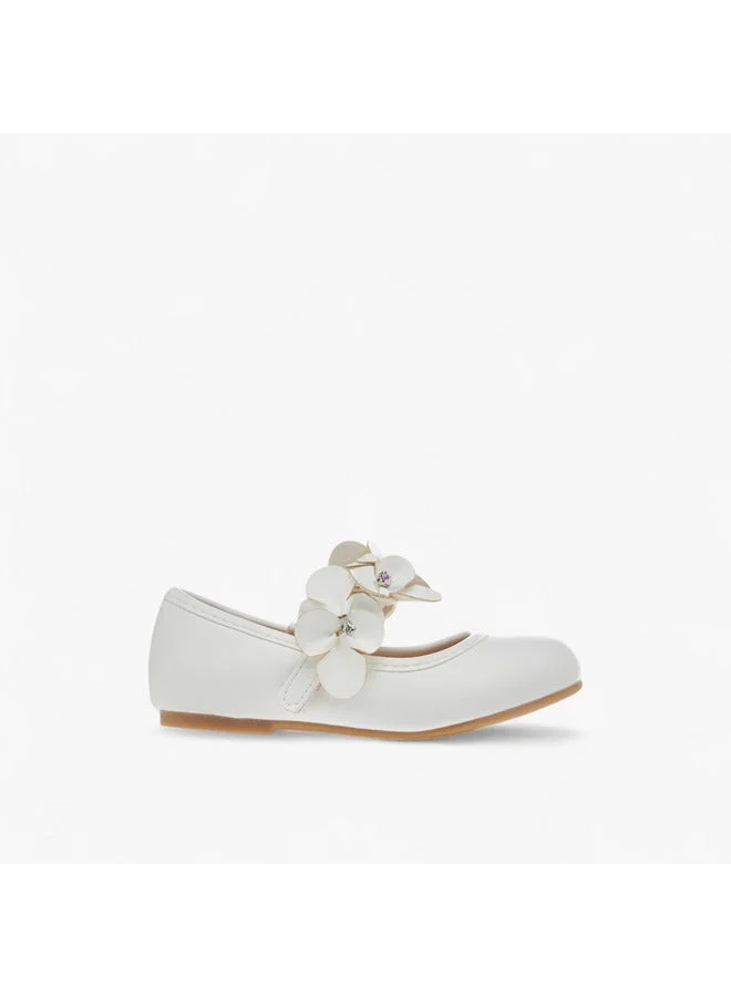 Flower Embellished Ballerina Shoes with Elastic Closure