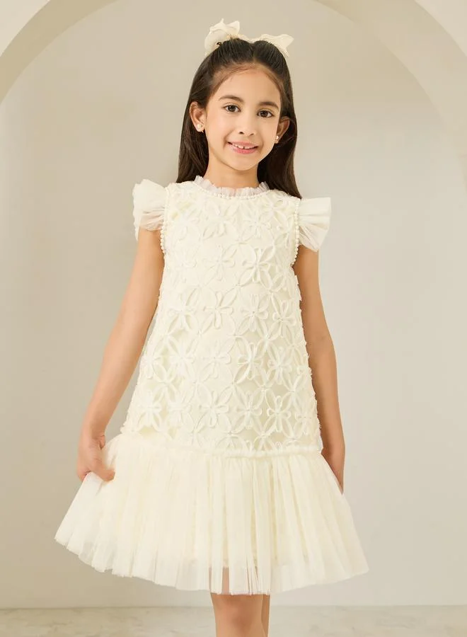 Embroidered Collar Printed Dress