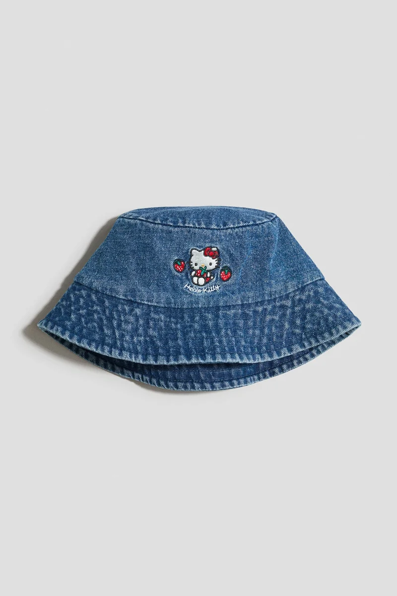 Embroidered denim bucket hat