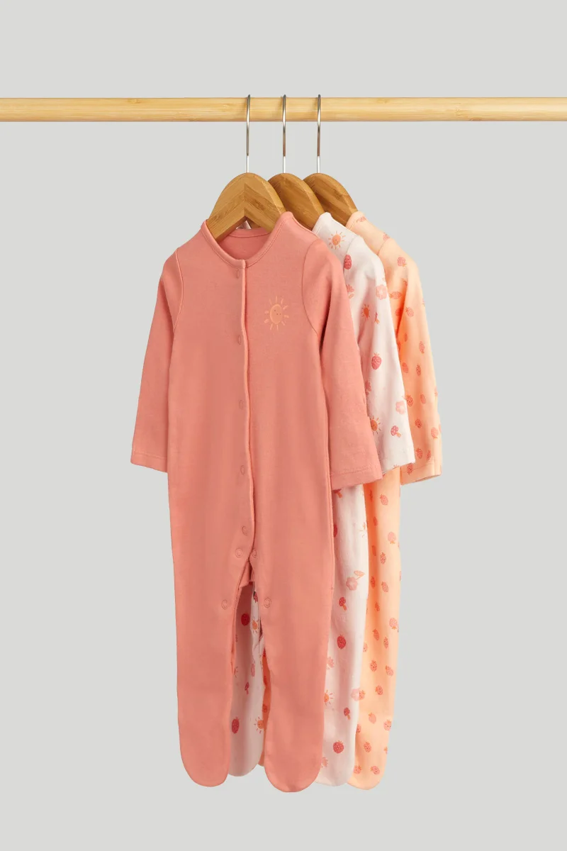 3 Pack Strawberry Sleepsuits