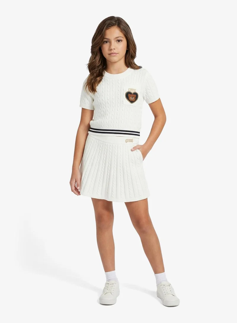 Girls White Floral Print Top and Skirt Set