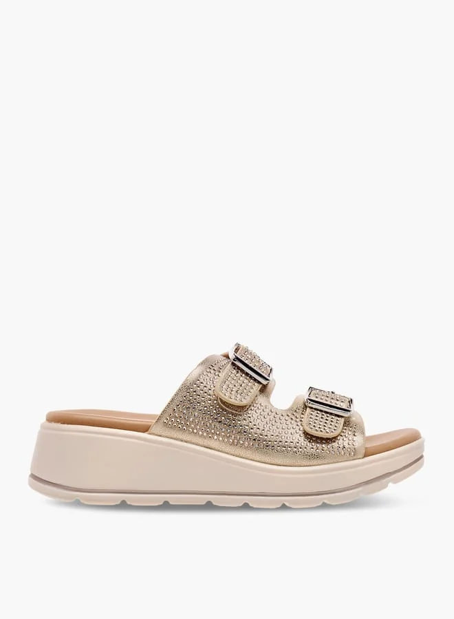 Girls Studded Slip-On Sandals with Buckle Detail
