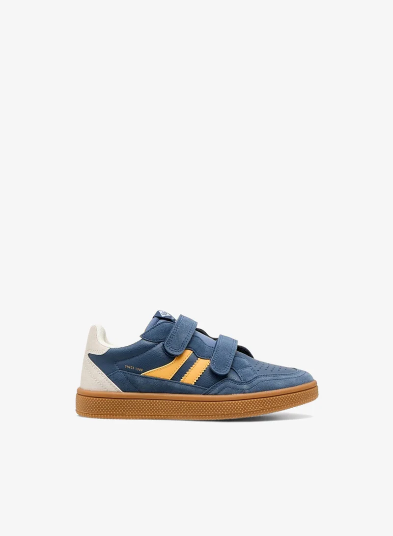 Boys' Panelled Low Ankle Sneakers with Hook and Loop Closure
