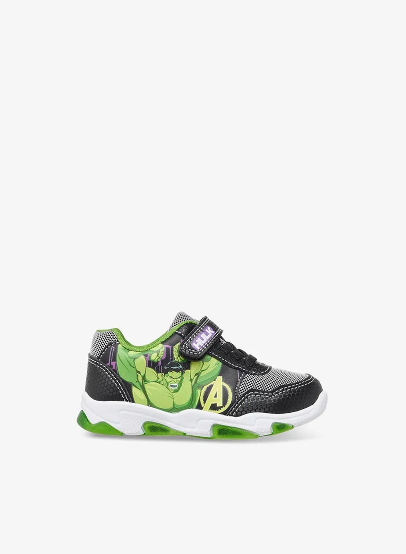 Boys Hulk Print Light-Up Sneakers with Hook and Loop Closure