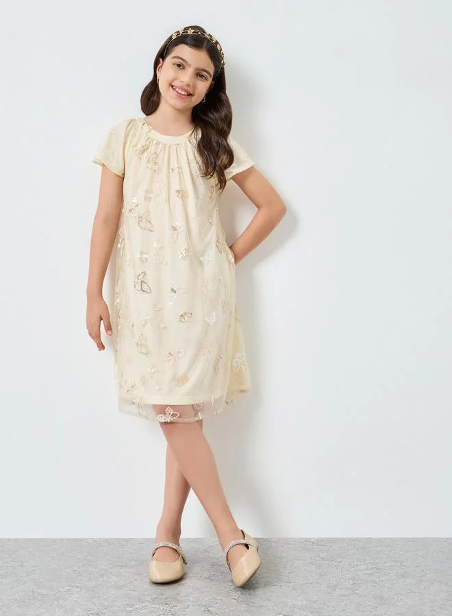 Girls Off-White Sequin A-Line Mini Dress