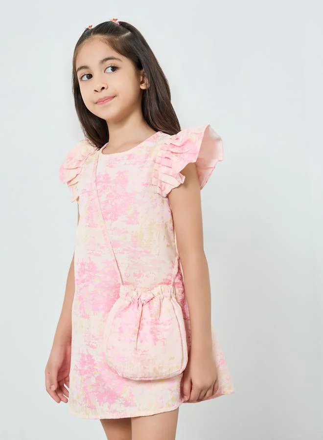 Girls Jacquard Pleated Dress with Bow Detail