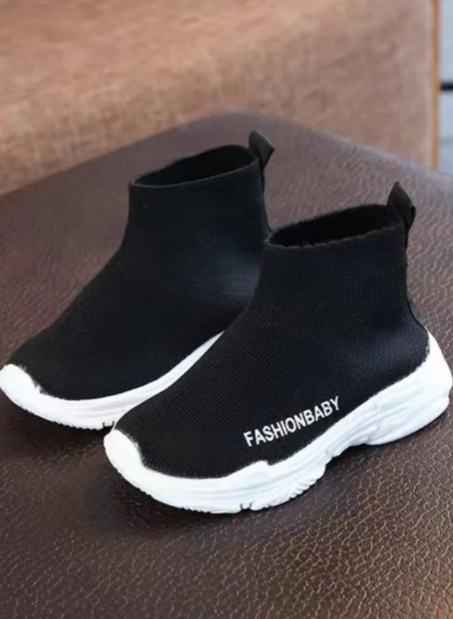 Girls Solid Black Slip-On Sneakers