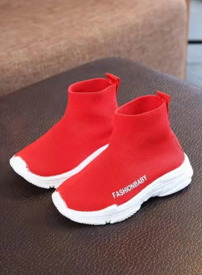 Girls Solid Red Slip-On Sneakers