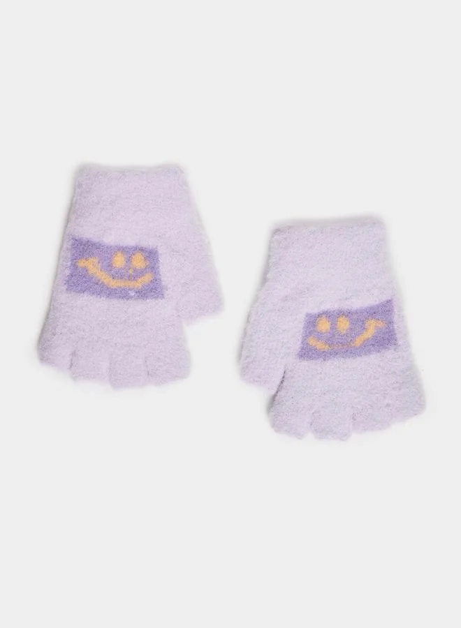 Smile Pattern Knit Fingerless Warm Gloves