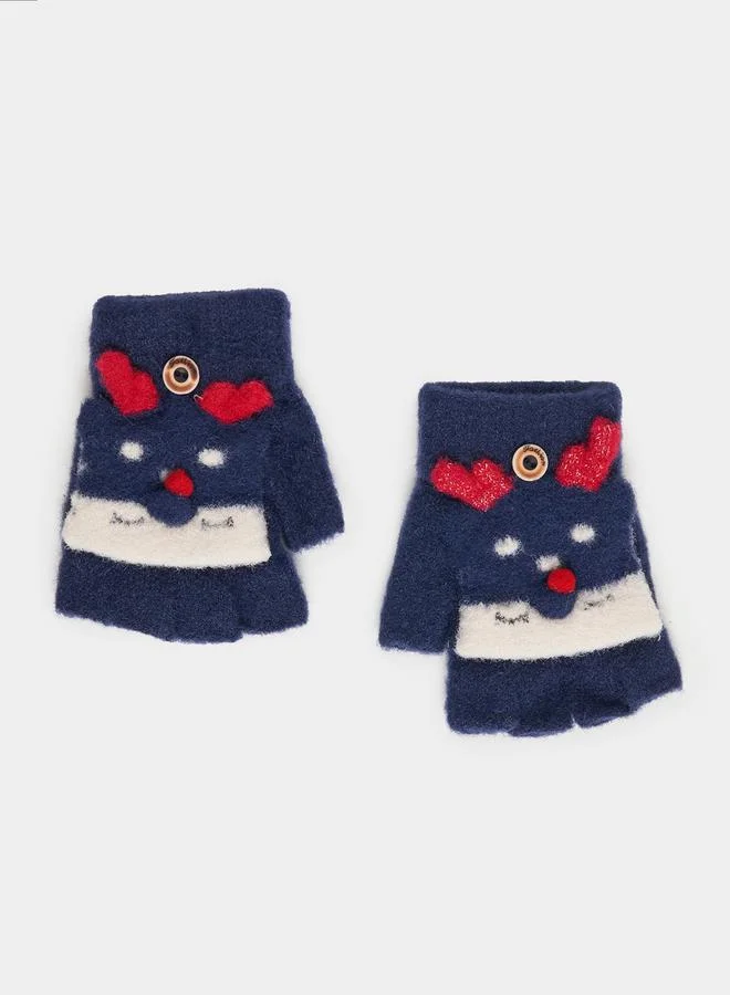 3D Cartoon Knit Convertible Mittens Warm Gloves