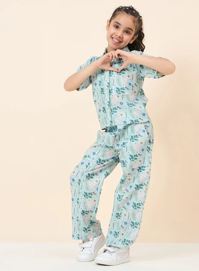 Girls Flower Print Shirt and Shorts Set