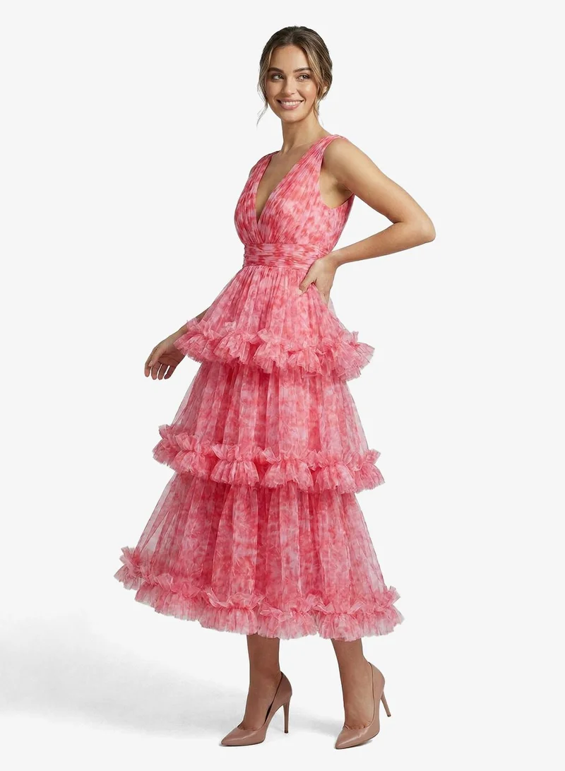Neddin Plunge Neck Ruffle Detail Midi Dress