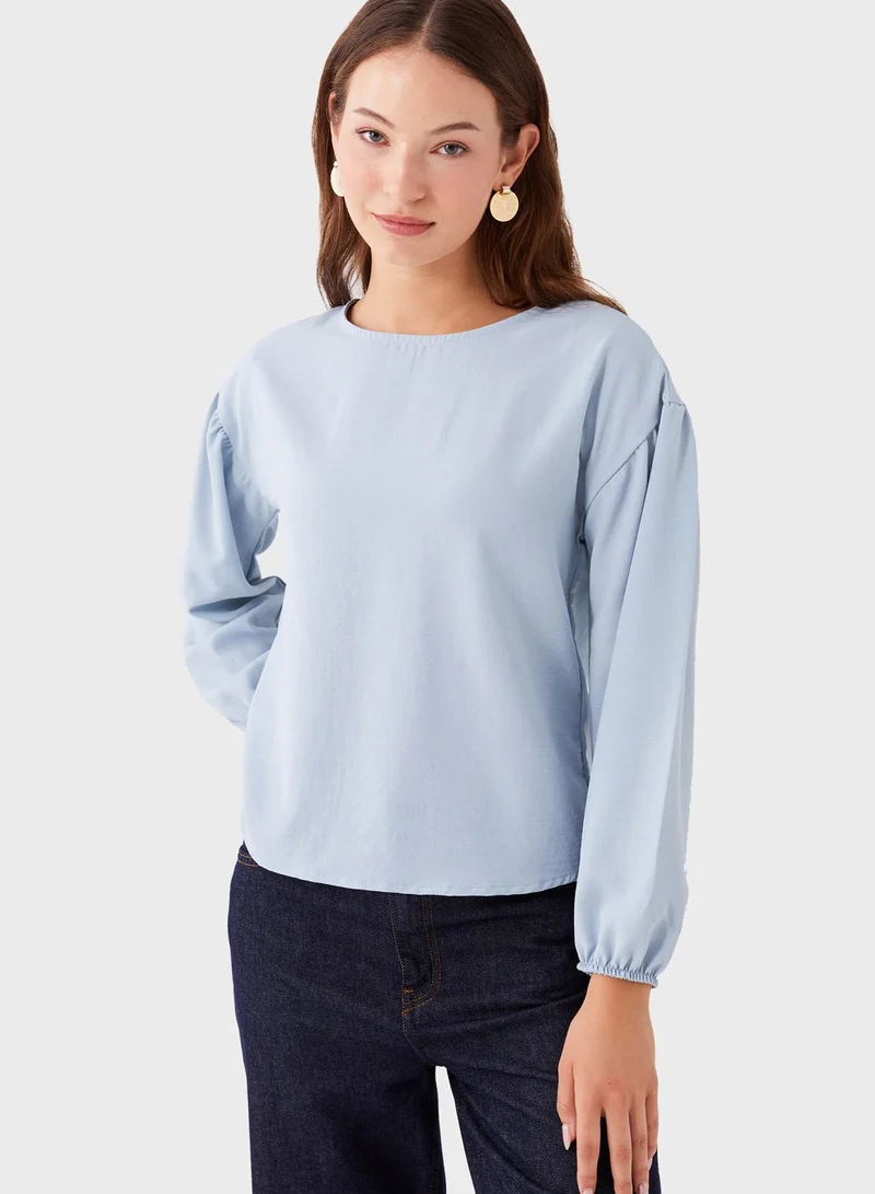 Puff Sleeve Crew Neck Top