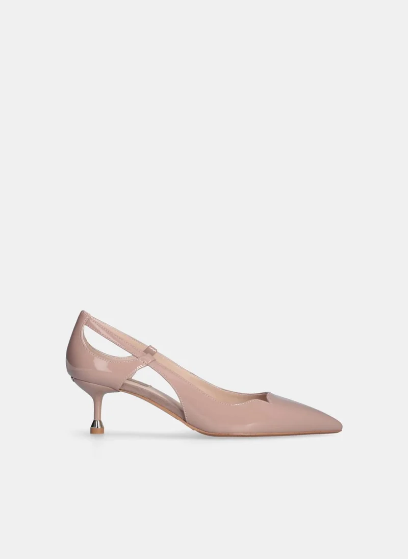 Leather court shoe with low heel.