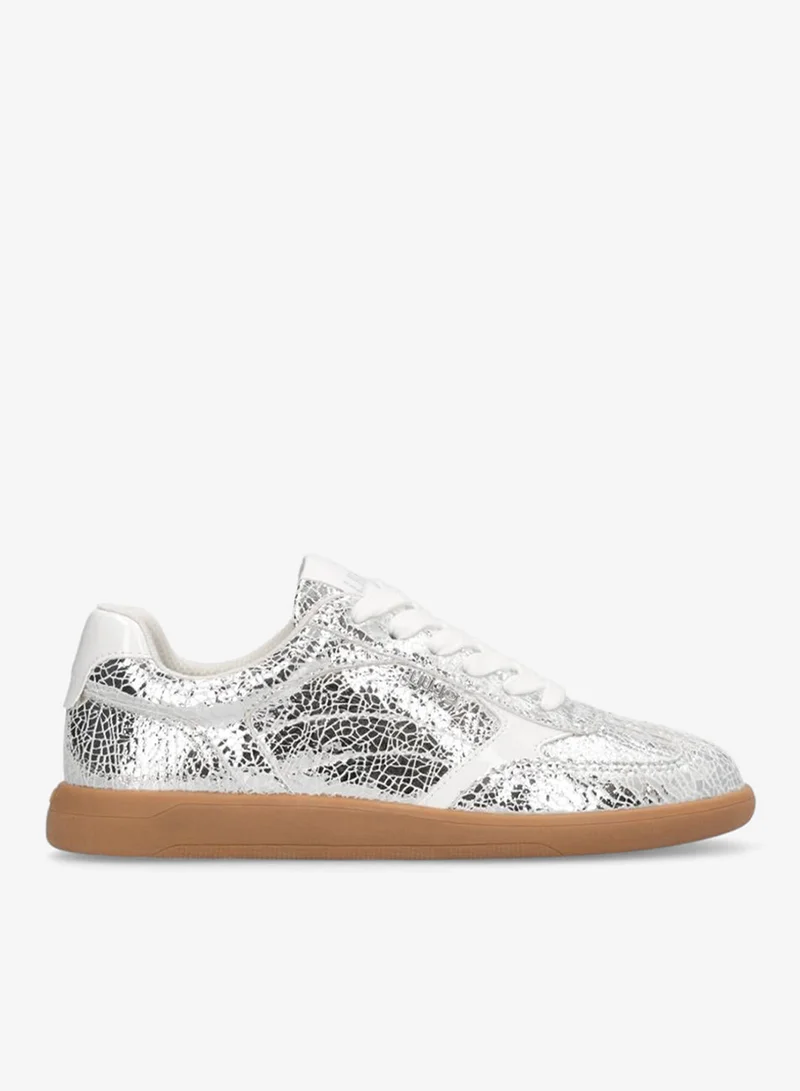 Metallic crackle-look leather sneakers
