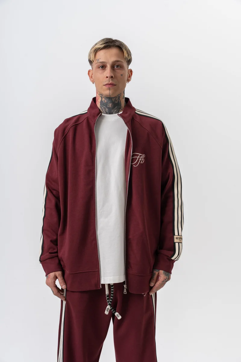 Men’s Respire Lettering Detail Hooded Basic Zip Oversize Hoodie Cherry