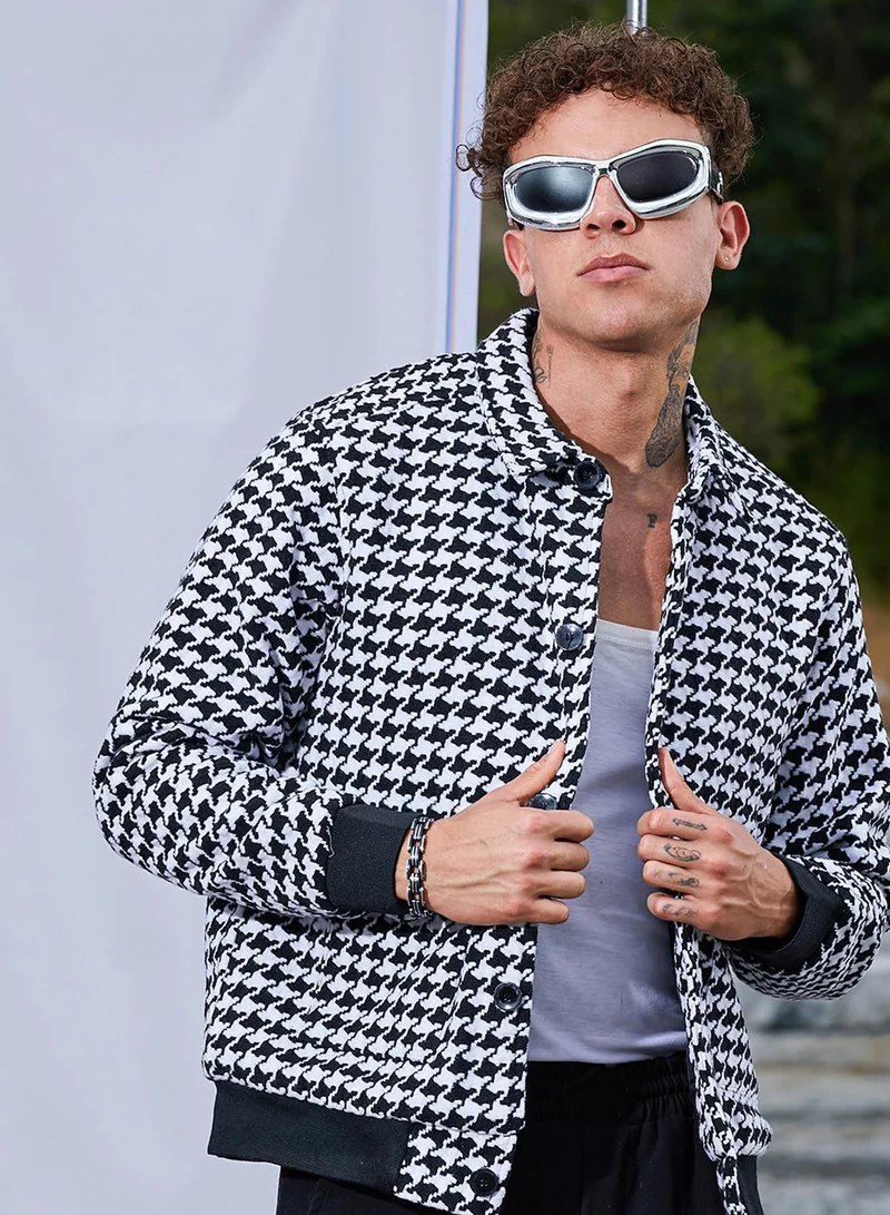 Men Stroke-Jacquard Bomber Jacket | Baseball Collar, Long Ribbed Cuff Sleeves | Zipper , Ribbed-Straight Hem | Abstract Jacquard | Woven Fabric For Casual & Daily Wear | Midnight Black