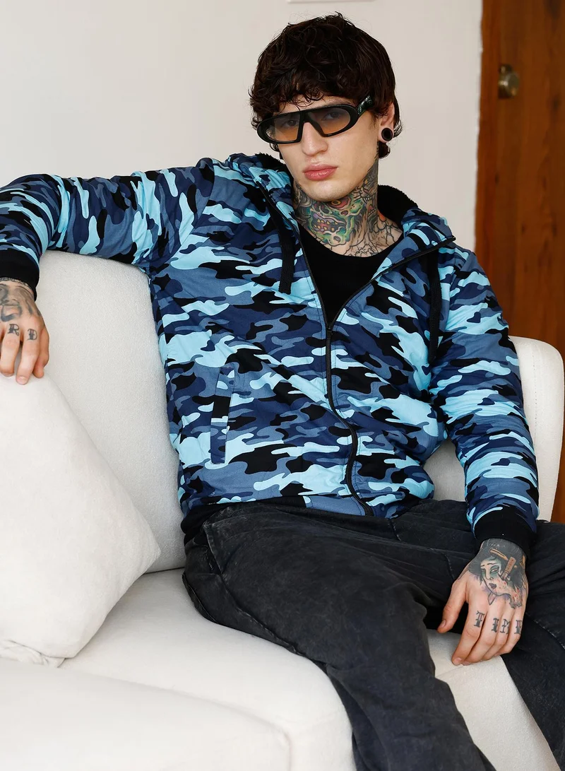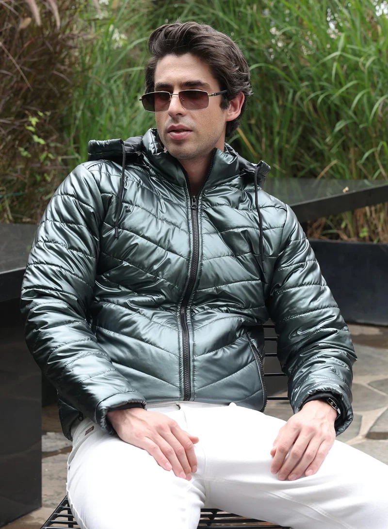Men's Electric Blue & Carbon Black Metallic Quilted Puffer Jacket