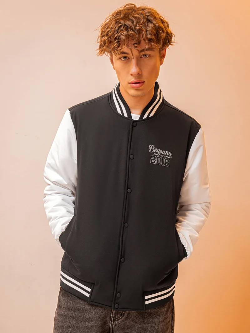 Plus Size Varsity Jacket with Long Sleeves and Pockets