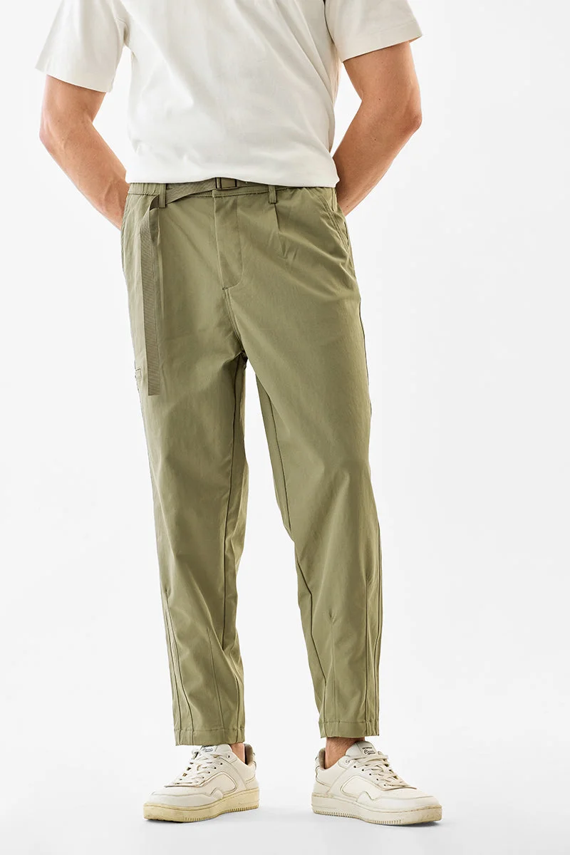 Men Regular Fit Solid Cargo Pocket Mid-Rise Cargo Trousers