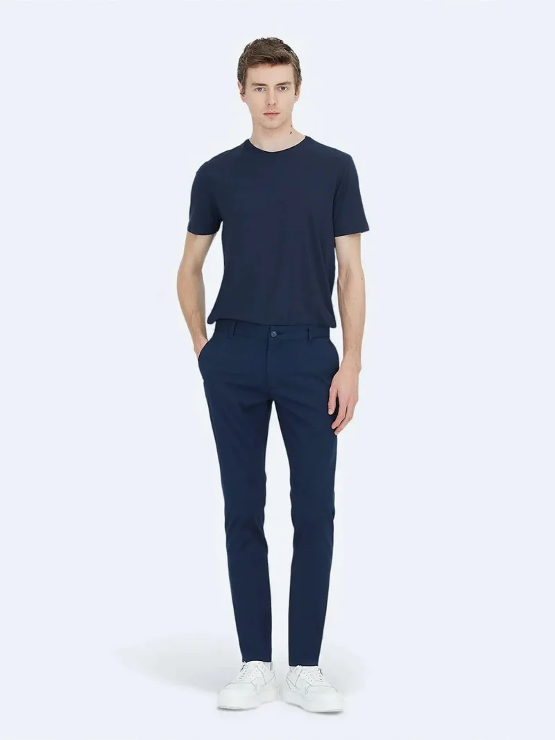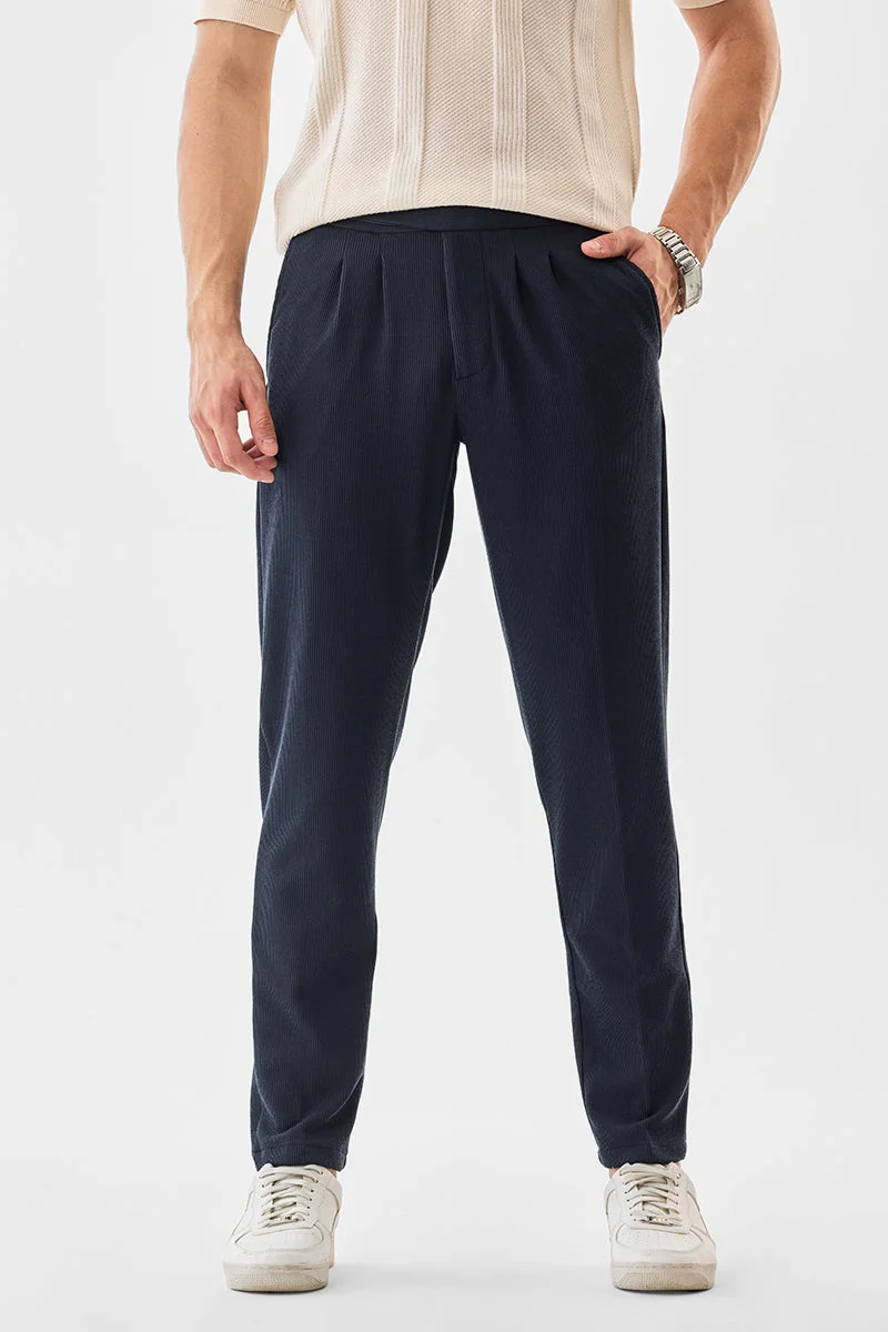 Navy Blue Weaving Slim Fit Classical Wool Blended Trousers