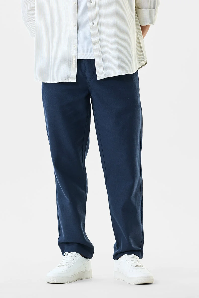 Light Navy Blue Weaving Regular Fit Casual Cotton Blended Trousers