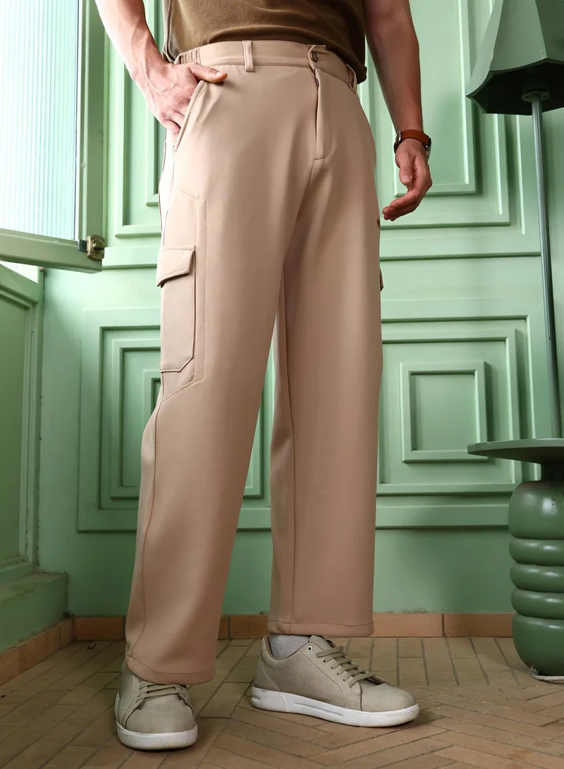 Martino Beige Plain Relaxed Fit Trousers