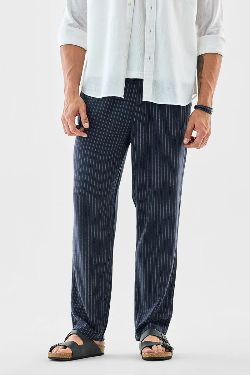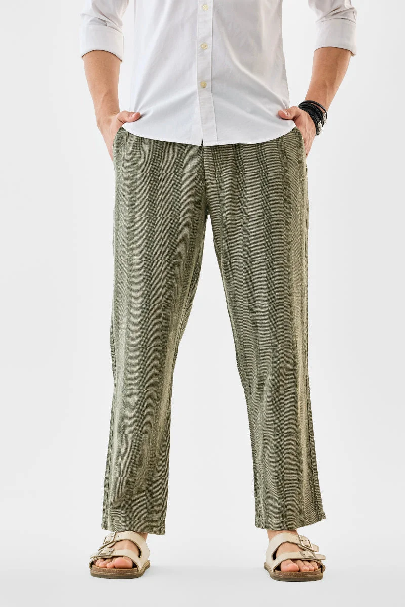 100% Cotton Straight Fit Stripes Trousers