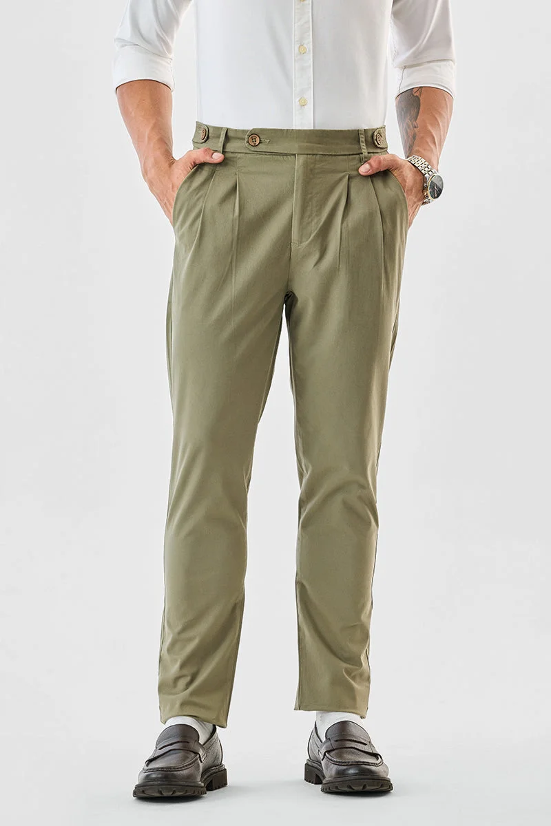 Men's Olive Green 100% Cotton Solid Pattern Chinos Straight Fit Trouser