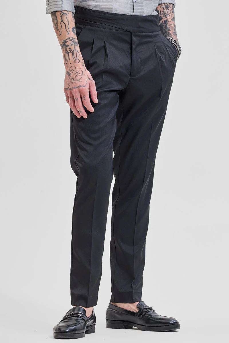 Black Material Modern Fit Classical Wool Blended Trousers