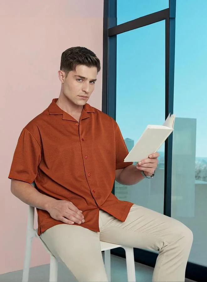 Lee Cooper Regular Fit Textured Resort Shirt with Collar
