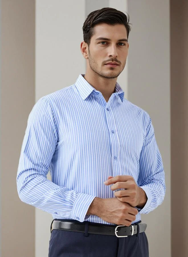 Regular Fit Striped Collared Shirt with Long Sleeves