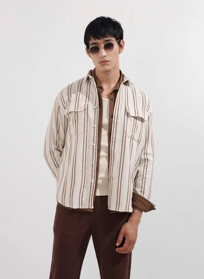 Men Relaxed Fit Striped Cutaway Collar Full Sleeves Shirt