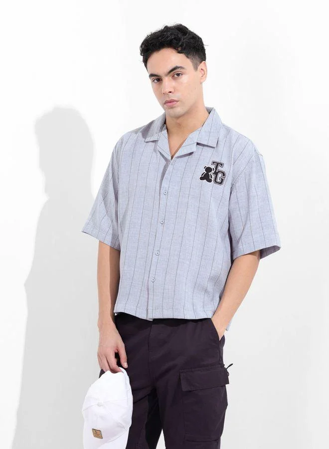 Men Boxy Fit Striped Cutaway Collar Half Sleeves Shirt