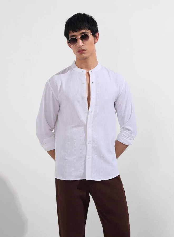 Men Regular Fit Textured Mandarin Collar Full Sleeves Shirt