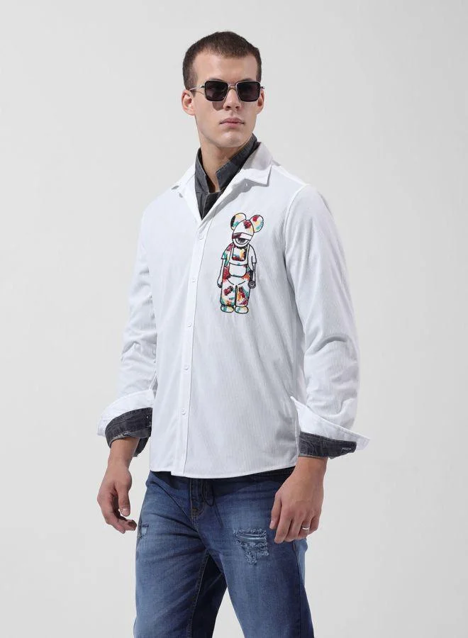 Men Regular Fit Embroidered Cutaway Collar Full Sleeves Shirt