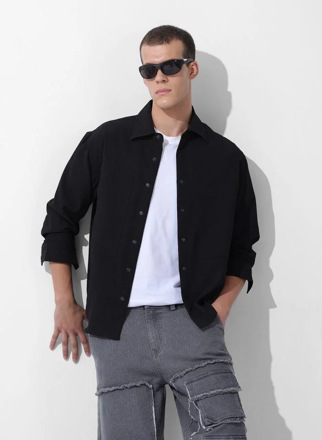 Men Oversized Fit Textured Cutaway Collar Half Sleeves Shirt